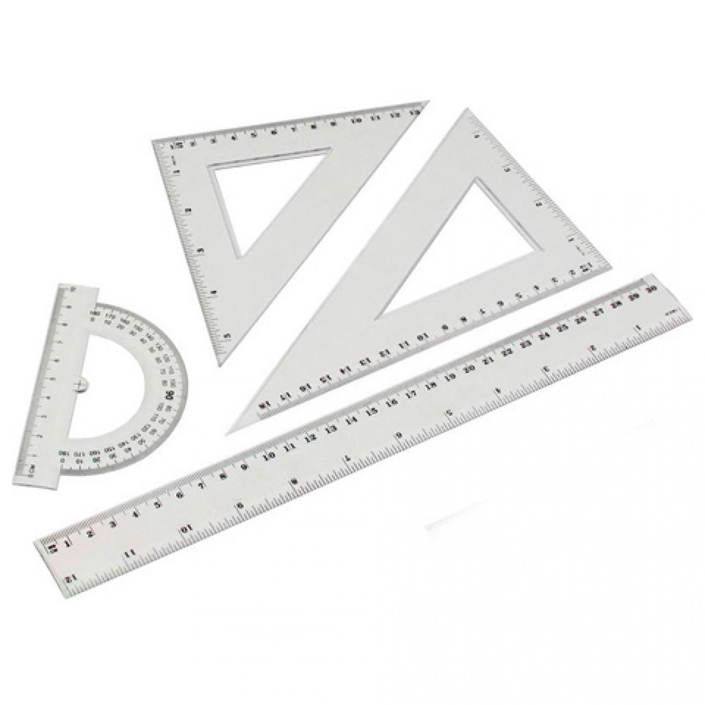 VONALZÓ KÉSZLET 4 DARABOS 30CM VONALZÓ, SZÖGMÉRŐ, 45 ÉS 60 FOKOS HÁROMSZÖG VONALZÓK