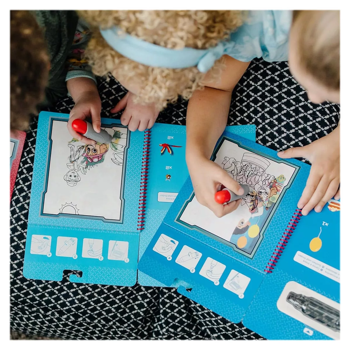 • A könyv újrafelhasználható színezőlapokat és egy vízzel való utántöltő rendszerrel ellátott tollat ​​tartalmaz.