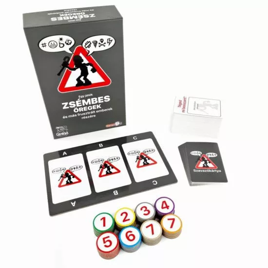 Ha úgy érzed, hogy a világ tele van olyan dolgokkal, amik idegesítenek, és szeretsz hangot adni a véleményednek, akkor a Zsémbes öregek neked való játék! Szórakoztató társasági partijáték, ahol az a cél, hogy kitaláld, mi zavarja leginkább a többi játékost, és mindezt gyorsan, miközben saját zsémbes természeted is előtörhet! A győzelem és közted csak egy furcsa megjegyzés vagy egy váratlan tippelés áll!