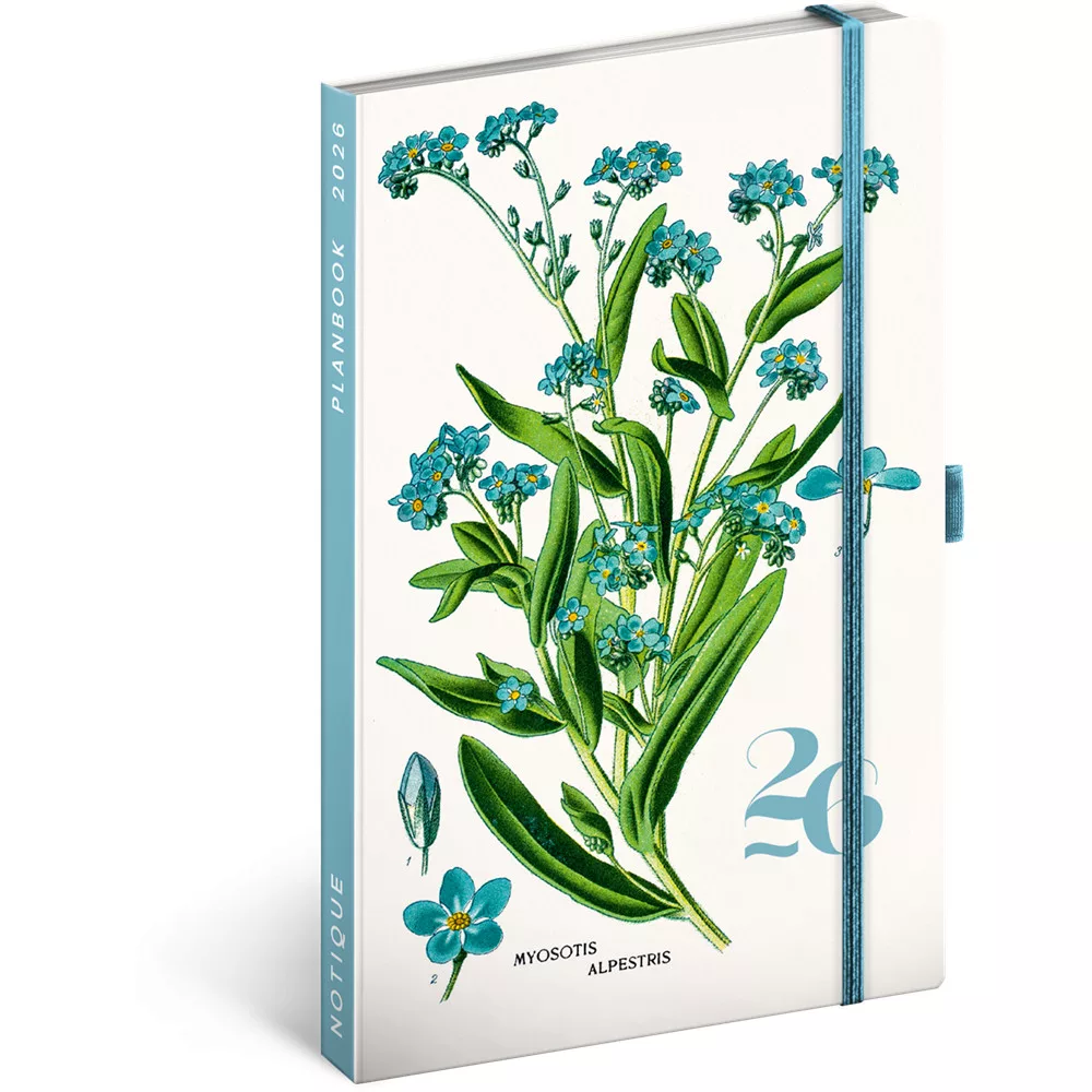 Keménytáblás notesz krémszínű lapokkal leszorító gumiszalaggal Herbarium 130x210mm, Presco