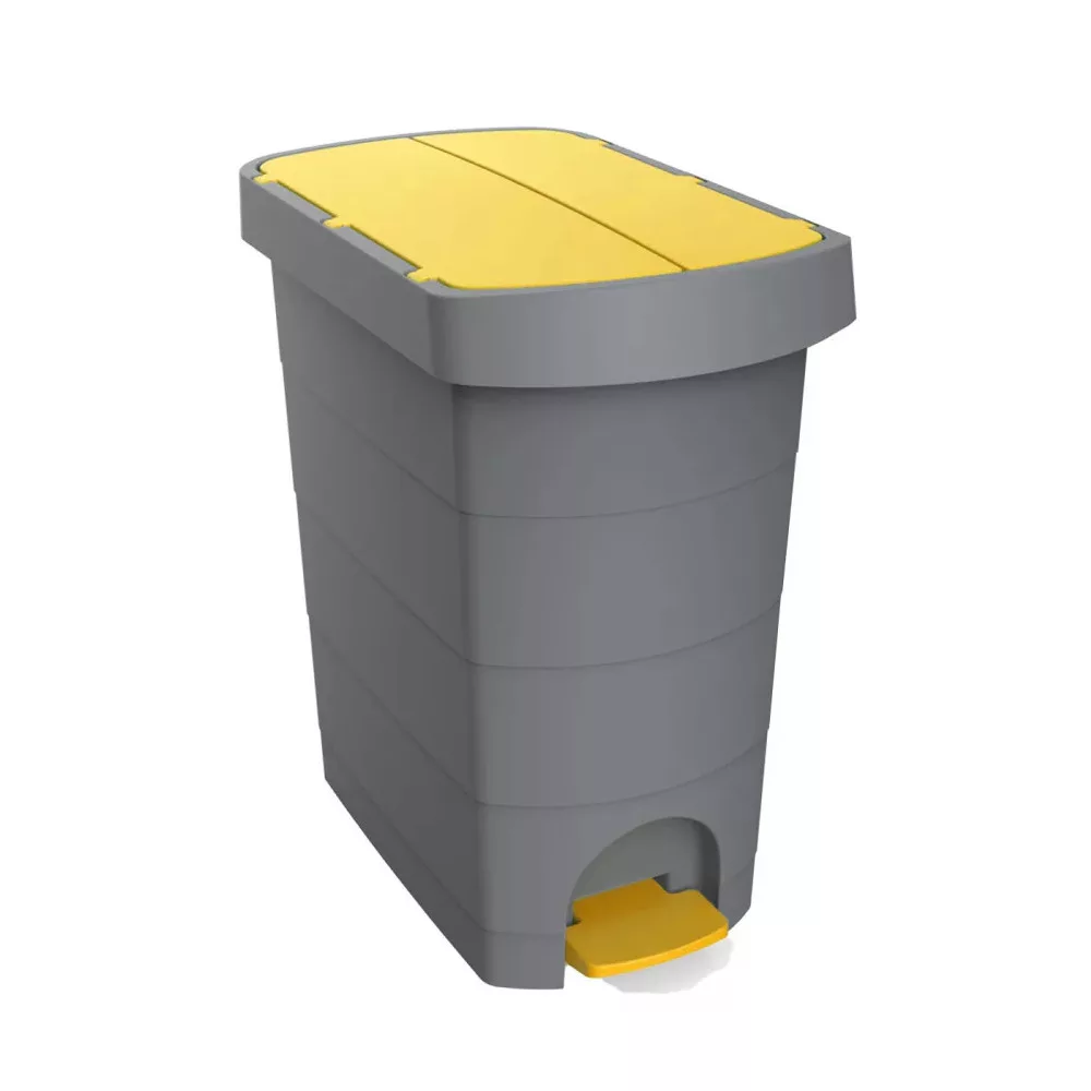 Szemeteskuka pedálos műanyag 60 literes Pelikán Slim eco antracit színű sárga tetővel UP232-214