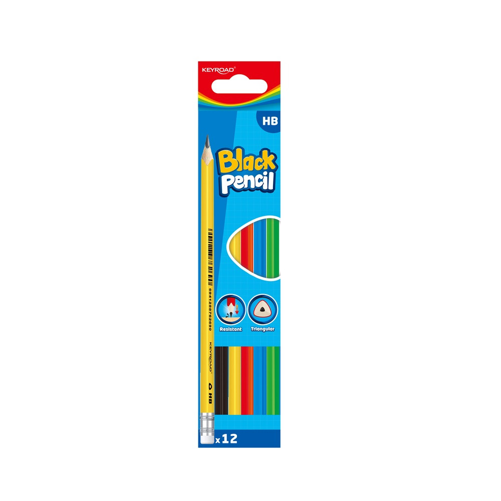 GRAFITCERUZA, HB, RADÍROS, HÁROMSZÖGLETŰ, 12 DB/BLISZTER, KEYROAD, VEGYES SZÍNEK