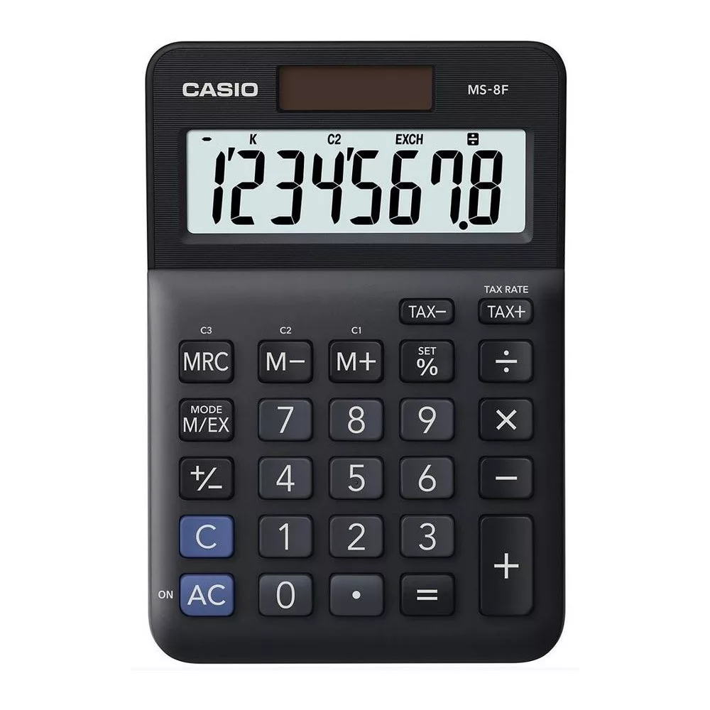 SZÁMOLÓGÉP ASZTALI 8 DIGIT NAGY, DÖNTÖTT KIJELZŐ CASIO MS 8 F FEKETE