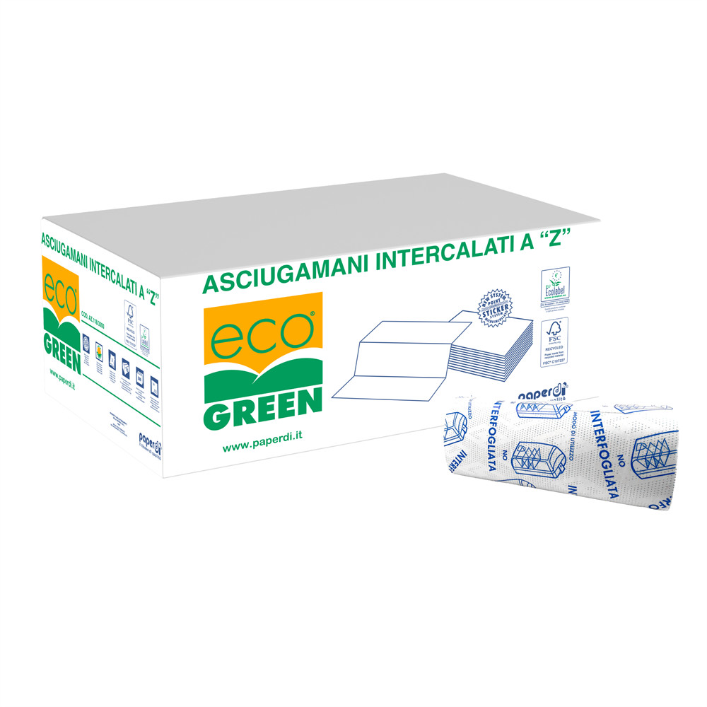 Kéztörlő 2 rétegű Z hajtogatású 200 lap/csomag 15 csomag/karton Paperdi_AZ.118/3000 fehér kék nyomattal