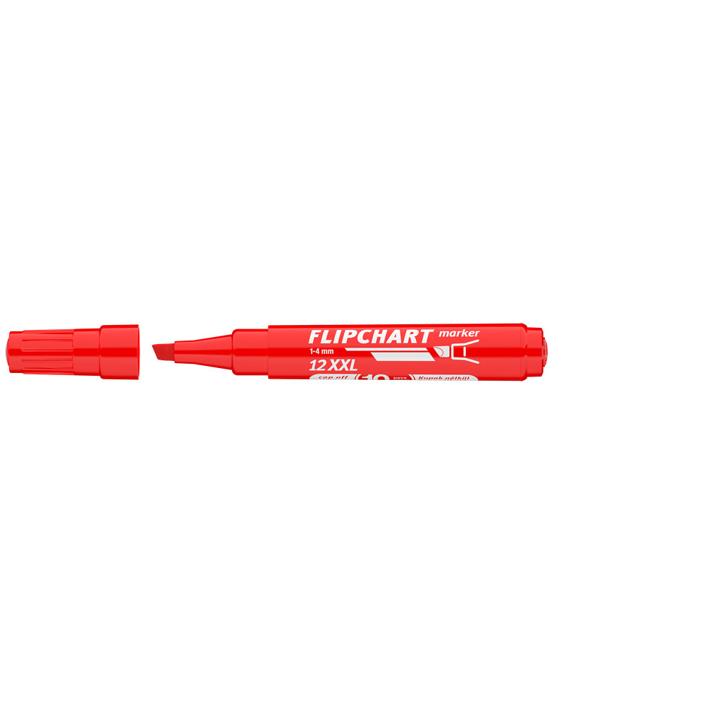 Flipchart tömbök és egyéb papírívek feliratozására alkalmas, vízbázisú festékkel töltött marker. A festék a papír másik oldalára nem üt át. Megnövelt élettartam a nagyobb méretű testnek köszönhetően. Vágott csúccsal. Vonalvastagság: 1-4 mm.Katalóguskód: 19137